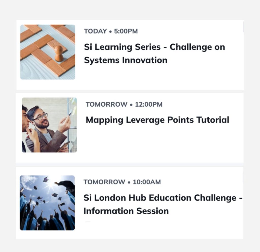 Upcoming events at Si today and tomorrow, UK times. Learning session: https://bit.ly/3ymqVwC Mapping leverage points: https://bit.ly/40YJofP Education challenge: https://bit.ly/3Zx5R1P
