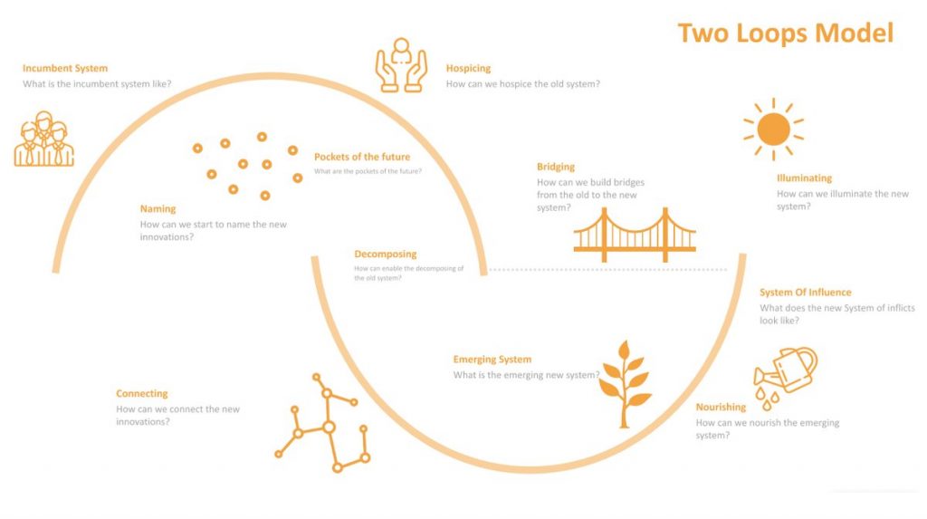 One of the best models for thinking about how systems change and how to support that, the “Two Loops” model, this guide and canvas will help you get start using it: Guide: https://bit.ly/3l4cCcH Canvas: https://bit.ly/3sbv1EO Video walk through: https://bit.ly/3WRJWRm