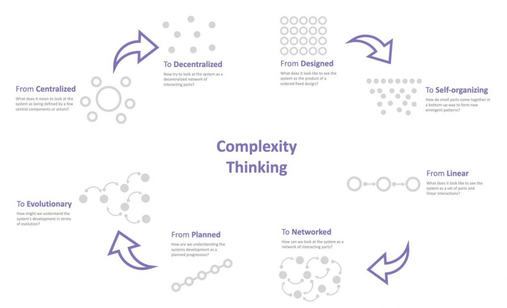 How to shift to a complexity paradigm. Taken from our complexity thinking canvas: https://bit.ly/3wOZcF3 Find our guide to complexity theory here: https://bit.ly/3RhTbaI Find the course on complexity theory here: https://lnkd.in/g_kQKmh4
