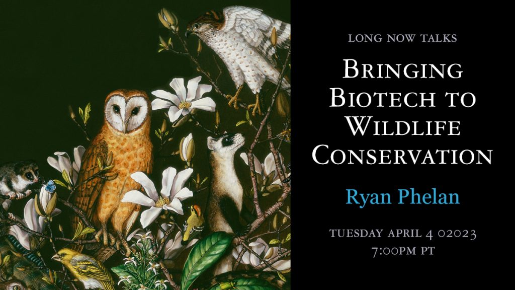 Next week: join us for a Long Now Talk with @Revive_Restore co-founder and Executive Director Ryan Phelan on how new advances in biotechnology can support wildlife conservation.