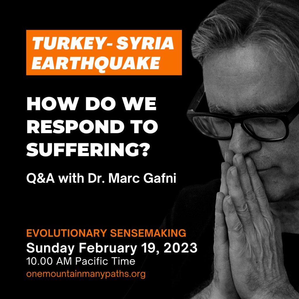 How do we talk about “The Universe: A Love Story” in a week in which the death toll in the Syria and Turkey Earthquakes surpasses 40,000 people? Live Q&A with Dr. Marc Gafni Sunday February 19, 2023 http://onemountainmanypaths.org